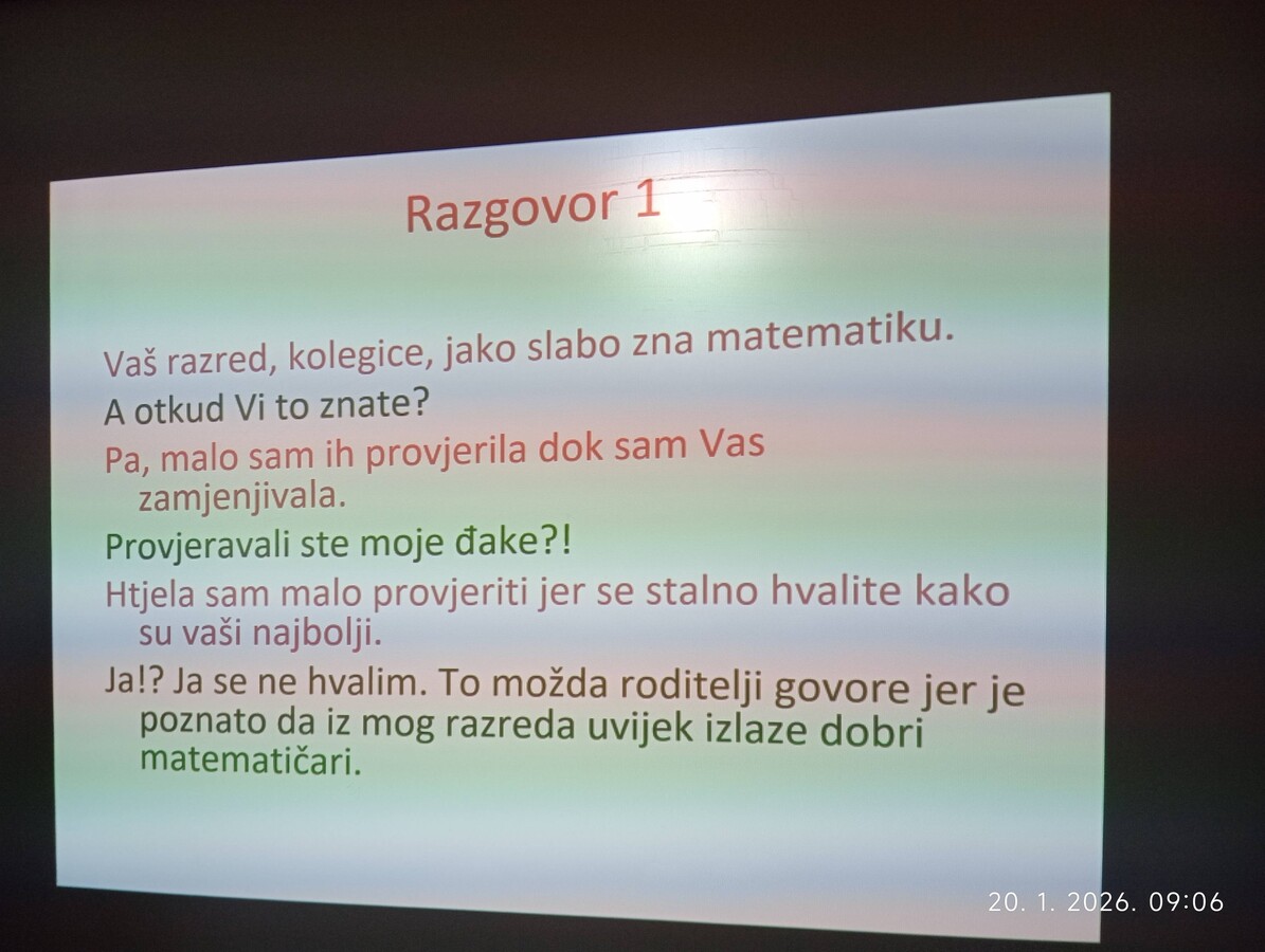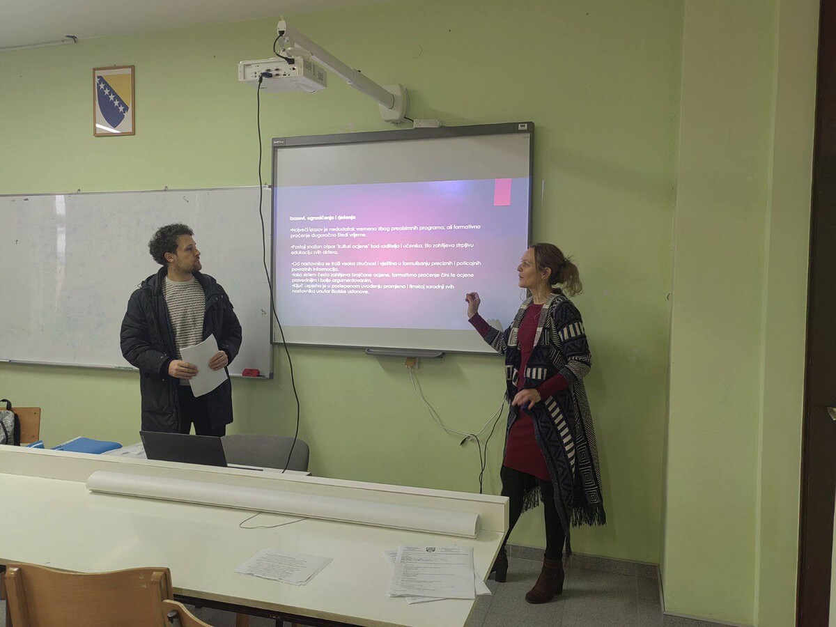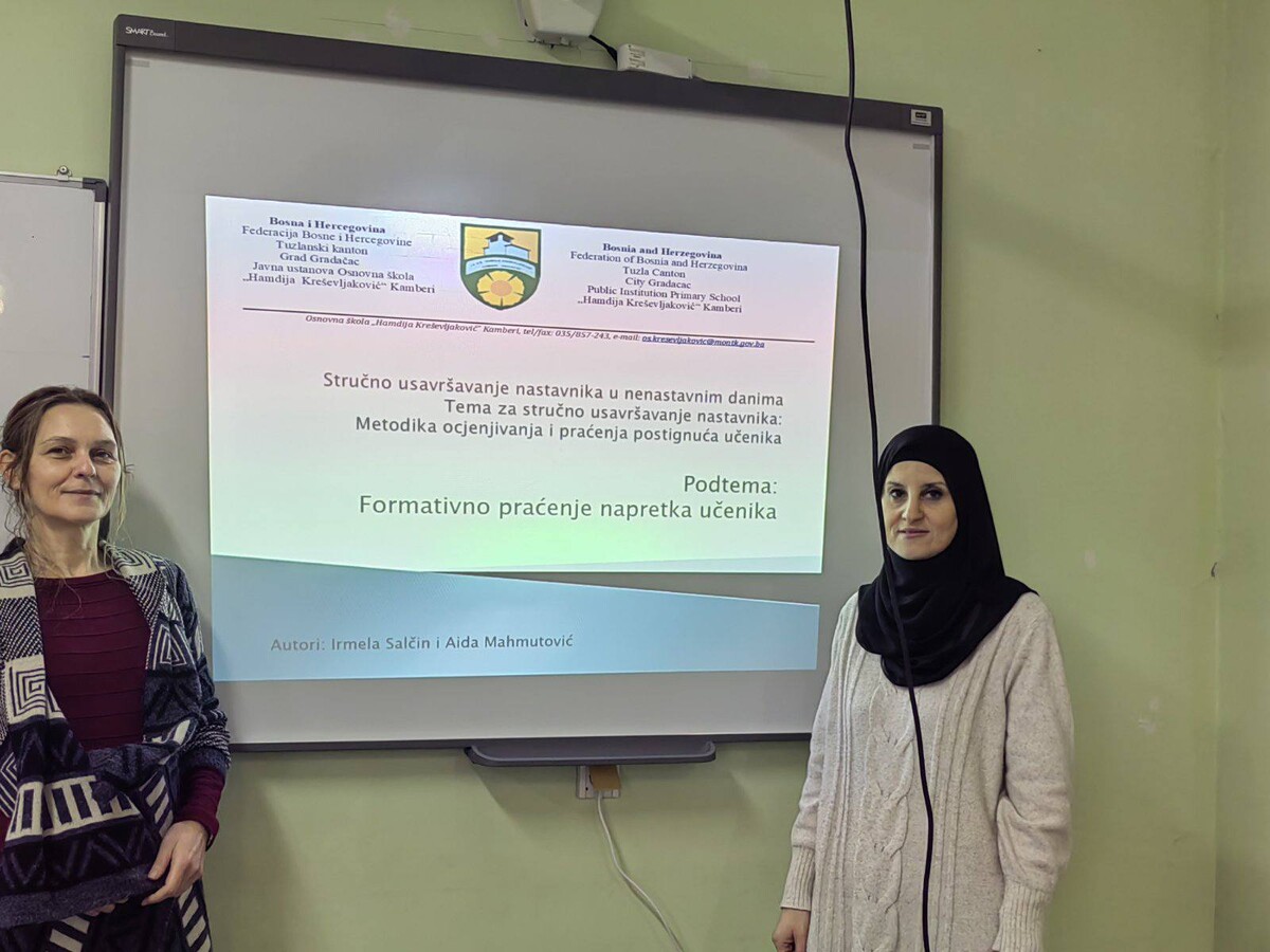 U srijedu 21.1. temu " METODIKA OCJENJIVANJA I PRAĆENJA POSTIGNUĆA UČENIKA" su kroz podteme obradili Irmela Salčin, nastavnica fizike i informatike sa tehničkim odgojem, Aida Mahmutović, profesorica hemije, Jasmin Brčaninović, profesor tjelesnog odgoja i sporta, Bakir Terzimehić BA likovne kulture i Adnan Hodžić, profesor likovne kulture.