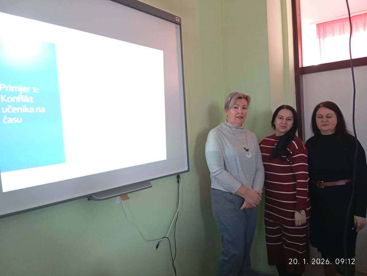 U utorak 20.1. temu " PREVENCIJA VRŠNJAČKOG NASILJA" obradili su kroz podteme Hasiba Šaldić, profesorica bosanskog jezika i književnosti, Sabrija Đedović, profesor matematike, Edin tokić, profesor historije, Zedina Deliomerović, BA razredne nastave, Damira Šećić, profesorica razredne nastave i Alma Biberkić, diplomirani pedagog - psiholog.